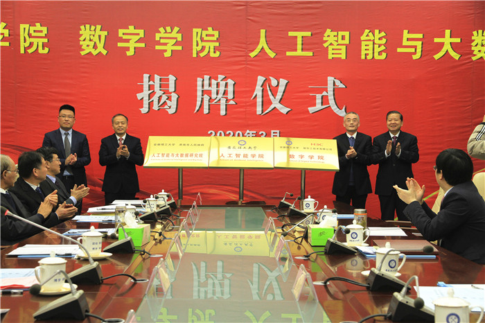 邬平川、郭永存、袁亮、盛剑晖共同为人工智能学院、数字学院、人工智能与大数据研究院揭牌。
