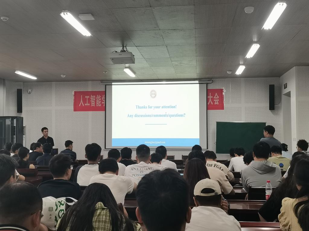 2024年9月20日上午,苏州大学青年特聘教授焦儒旺与维也纳工业大学夏海研究员应邀参加安徽理工大学人工智能学术论坛。论坛由人工智能学院韩守飞副教授主持。人工智能学院执行院长李长河,以及学院近100名师生参加此次论坛。