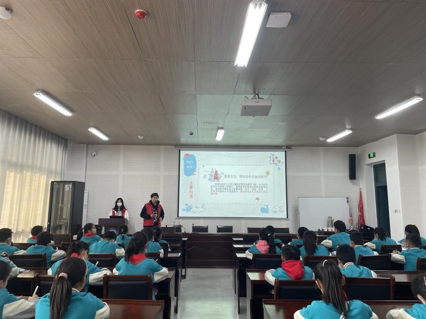 大手牵小手,实现宣讲与学习的双向互动。在明德楼208报告厅,“智行”志愿服队队员王乐群同学通过PPT、小视频等方式向小学生们讲解科学家精神,并以新中国成立以来涌现的优秀科学家为例,与小学生们一起领略老一辈科学家爱国、创新、求实、奉献、协同、育人精神,引导小学生们热爱科学,致敬前辈,埋下科学的种子。