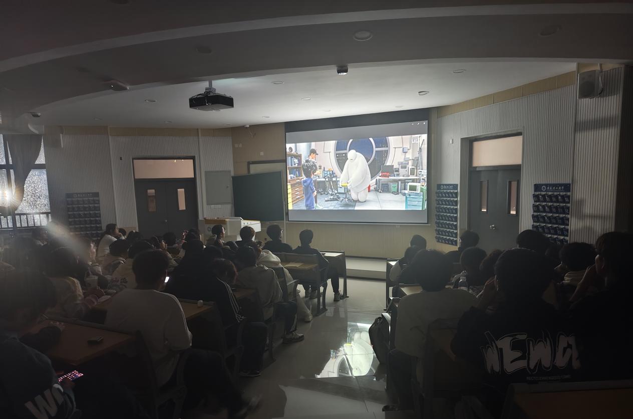 接着,来到同学们期盼已久的“第二站”——观影。为了进一步加深大家对心理健康的重要性的理解,鼓舞同学们对生活充满信心与热爱,工作人员放映了一部符合心理主题、积极阳光的电影——《超能陆战队》。影片讲述了小宏和他的伙伴们在面对巨大挑战时所展现出来的勇敢与坚持,他们与大白这一充满爱心和智慧的机器人一起,共同对抗利用微型机器人进行犯罪活动的面具人。其中,机器人大白的形象最为讨喜,“大白”的温暖仿佛透过屏幕治愈着每个同学的心灵。活动过程中,“换个角度看问题”这句有教育意义的台词也深深触动着每位同学,令同学们深刻体会到:当我们面对生活中的困难和挫折时,无需迷茫,也无需焦虑,换个角度看问题,往往能重新燃起希望之光。