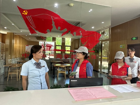 实践团赴中国共产党合肥历史馆开展红色教育活动,并与工作人员深入交流。历史馆讲解员表示:“普通话是传播红色文化、凝聚民族共识的重要纽带。”