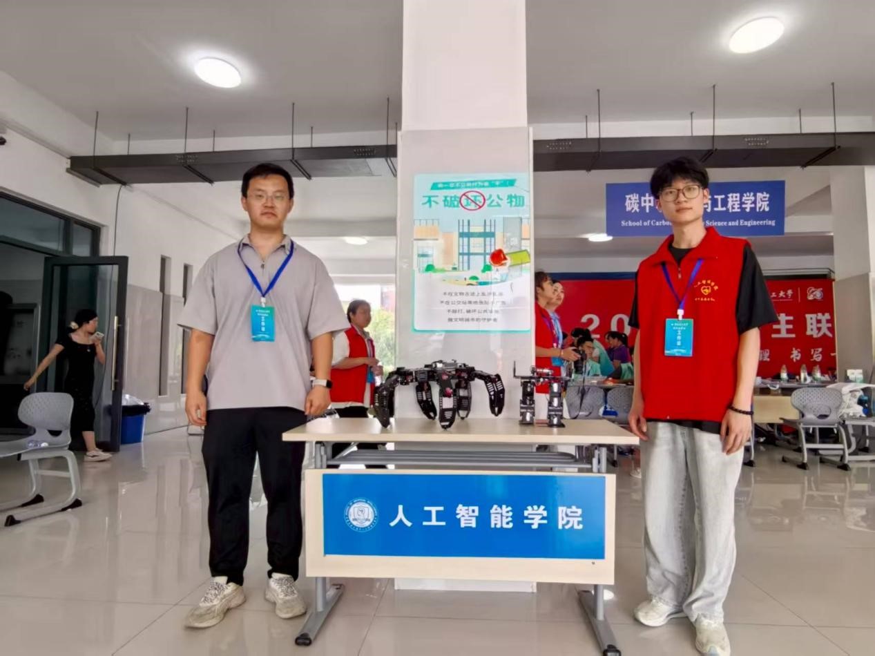 学院创新引入六足机器人和双足机器人,在报到处进行动态展示,吸引了众多新生及家长驻足观看。学院还设置了以“AI梦想启航”为主题的创意打卡点和新生照片墙,为新生家庭提供合影留恋的场景。