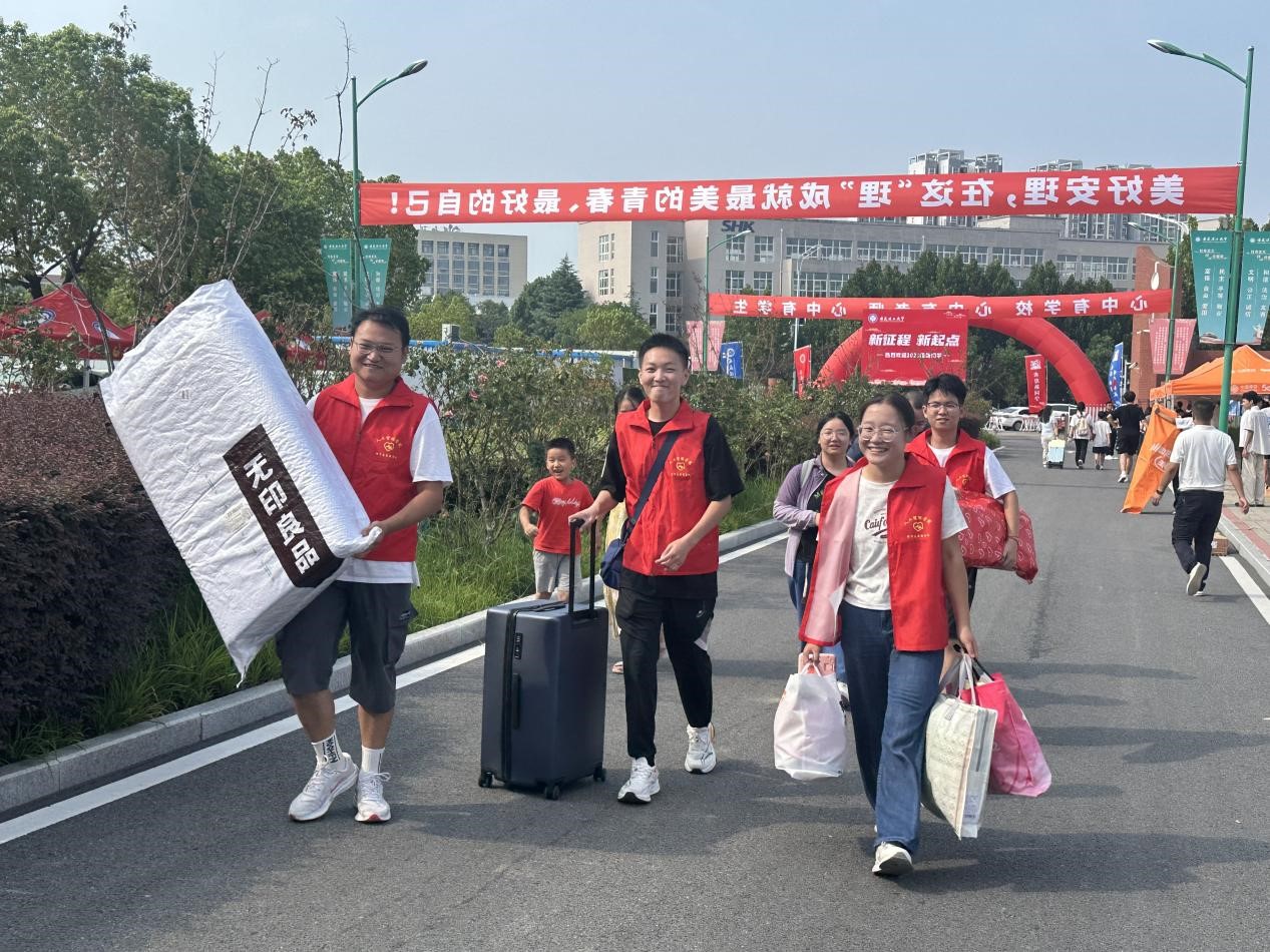 学院合肥校区党支部主动扛起责任,坚守迎新一线岗位。从火车站出站口到学校北门,党员教师和入党积极分子们冲锋在前,主动帮运行李。在通往学生宿舍的主干道旁,学院设立党员先锋岗,为新生家长答疑解惑。