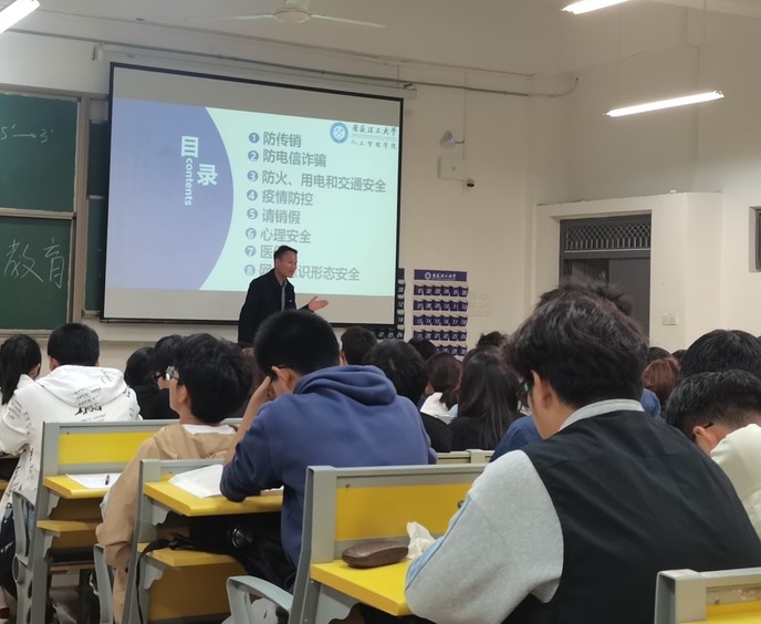 人工智能学院辅导员在教室开展防传销教育主题班会,就传销的概念、传销的途径、对传销组织的辨识方法以及如何做好防传销工作进行了宣传和预防教育。通过实际案例对学生进行讲解,使同学们对传销危害性有了清醒的认知,师生共同学习反传销相关知识,开展传销行为辨识讨论,共同收获了预防传销的知识,提高了自身的分辨能力、增强了防范意识。