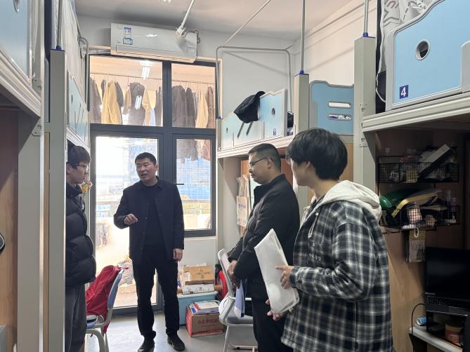 活动中,检查组后前往老生和新生宿舍,重点围绕冬季用电安全、消防安全等核心内容开展排查,耐心叮嘱学生杜绝违规电器使用,养成随手关灯、关电源的良好习惯,时刻绷紧安全弦。同时,鼓励新生尽早明确学习目标,做好个人规划,为未来成长发展筑牢坚实根基。
