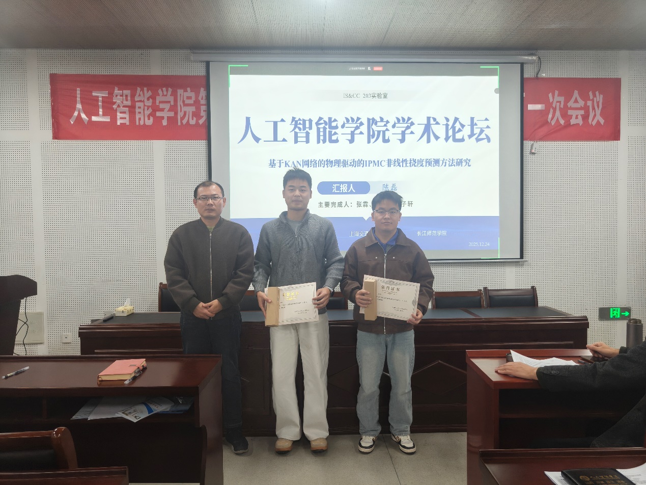 评委教师在认真听取汇报后,从研究背景、技术路线、创新点与实验验证等方面进行了点评,并就成果完善和应用场景拓展提出了建设性意见。现场交流充分,学术氛围浓厚。经评审,论坛最终评选出优秀论文一等奖1名、二等奖2名、三等奖2名,并为获奖学生颁发证书与奖品。