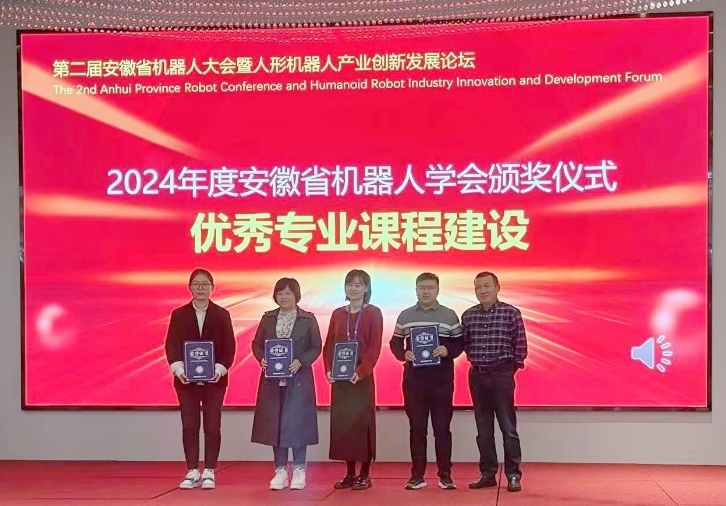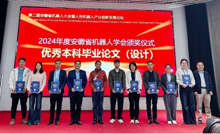 会议同时举行了2024年度安徽省机器人学会的颁奖仪式,我院由王成军教授指导的“多功能智能仿人手臂设计”、王成军教授及李龙老师主讲的“数字孪生与智能制造”分别荣获优秀本科毕业论文”、“优秀专业课程建设”的荣誉称号,是对学院教学工作、组织管理以及发展成效的一种肯定。