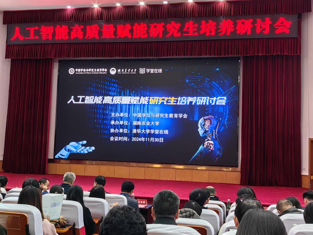 11月29日-12月1日,中国学位与研究生教育学会在线教育委员会在湖南农业大学举办“人工智能高质量赋能研究生培养研讨会”,会议旨在推动人工智能技术与研究生培养深度融合,加快研究生教育高质量发展,此次大会邀请了来自人工智能与数字化教育领域的专家,共同探讨人工智能技术在研究生教育中的创新应用与人才培养,人工智能学院王艳和研究生院方文倩老师参加了此次会议。