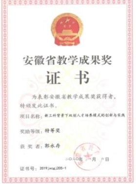 获省部级科技进步奖一等奖2项、二等5项、三等奖5项,获其它省部级科技奖8项。获安徽省教学成果特等奖3项、一等奖7项、二等奖4项,三等奖1项。