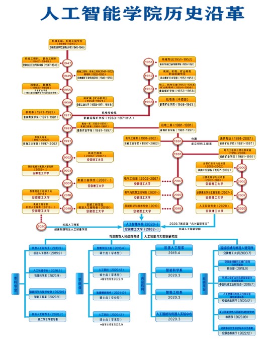 人工智能学院的办学历史可追溯至1945年安徽省立蚌埠高级工业职业学校的机电专业。