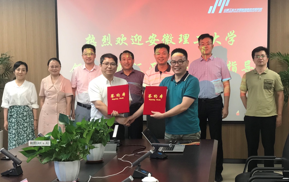 交流结束后,王成军、赵杰分别代表人工智能学院与安徽汇正电子科技有限公司在研究院四楼会议厅签署产学研合作协议,周琪、校党委宣传部部长田中良、校科研部沈豫浙及企业其它管理层人员等见证了签约过程。签约结束后,与会人员参观了安徽汇正电子科技有限公司、安徽合动智能科技有限公司的研发中心和最新技术产品。