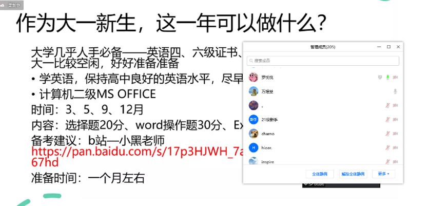 该活动通过腾讯课堂以线上交流的形式开展。学院新生辅导员、优秀青年博士教师、助理辅导员、高年级优秀学生、学生会干部分别就自我疫情防控、专业课程认知、学科竞赛初窥、大学校园生活、学习方法养成等与2021级本科生进行了交流。