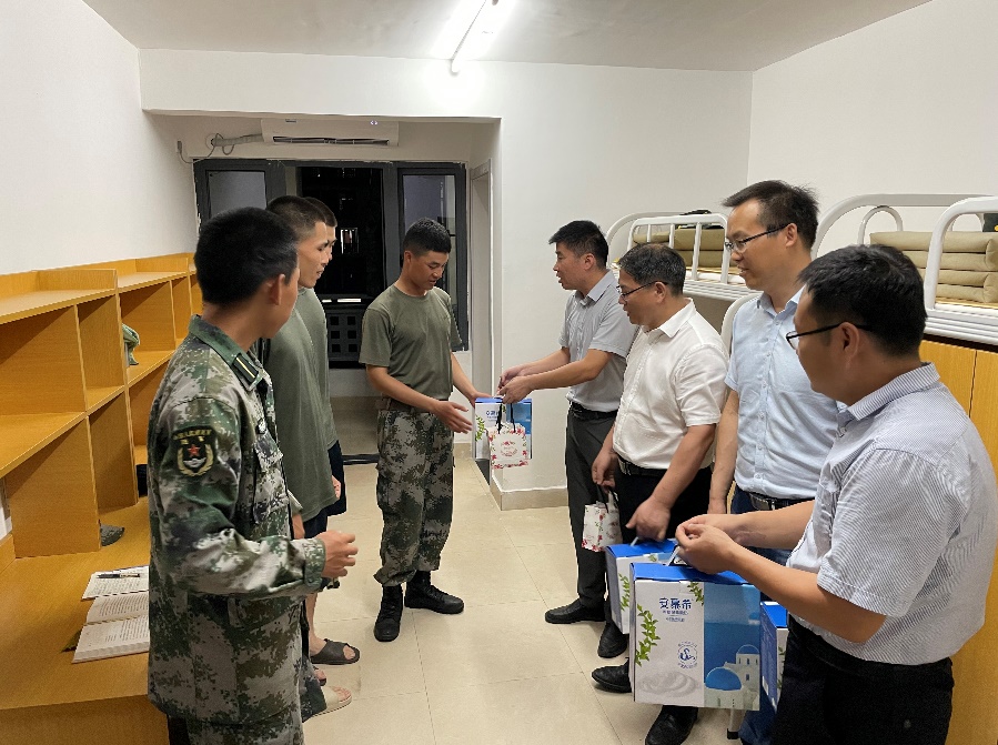 会后,学院领导班子及辅导员一行来到军训教官宿舍,与教官亲切交谈,感谢教官们的辛苦付出,希望教官坚持不懈严格要求参训学生。同时,为十七团全体教官送上节日慰问品。