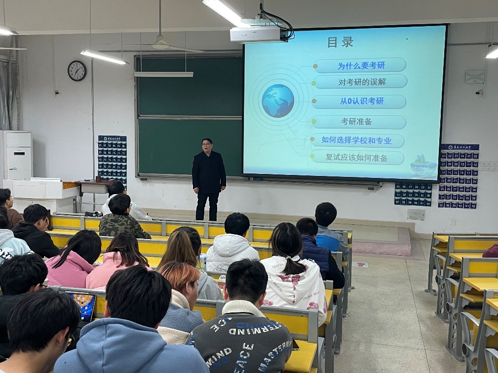 11月26日晚上,人工智能学院在明理北216教室举办了2019级考研动员大会,学院院长王成军作考研动员专题讲座。2019级辅导员和全体学生参加本次活动。