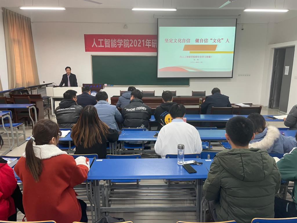 12月7日下午,人工智能学院党委邀请校审计处处长朱炜为学院全体党员上了一堂以《坚定文化自信,做自信文化人》为主题的精彩党课。学院党委书记张旸主持讲座。