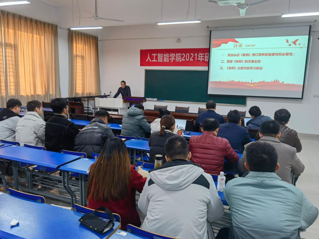 12月9日下午,人工智能学院在崇智楼A125报告厅举办学习解读《中国共产党普通普通高等学校基层组织工作条例》专题讲座,邀请学校机关党委书记、组织部副部长涂有胜作专题辅导报告。学院全体师生党员参加本次学习活动。学院党委书记张旸主持会议。