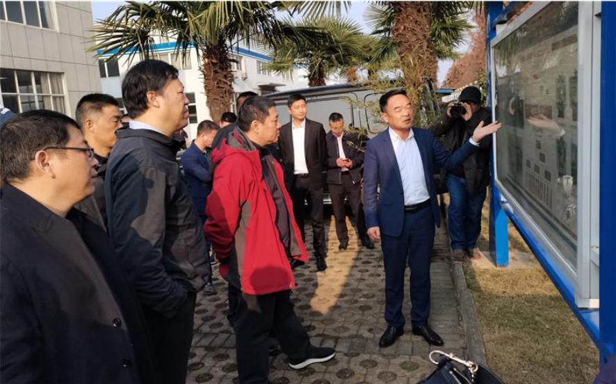 建林机械公司董事长向与会人员介绍了企业产品及企业的发展状况,随后,调研人员在公司大门前合影留念。