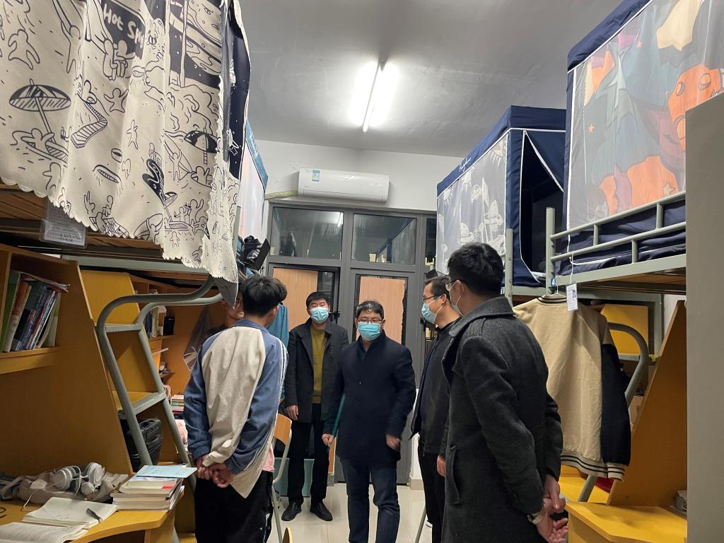 为切实做好疫情防控工作。3月30日晚,人工智能学院领导班子和学院辅导员一起深入学生宿舍走访慰问,了解学生疫情期间网课进展以及生活状况。