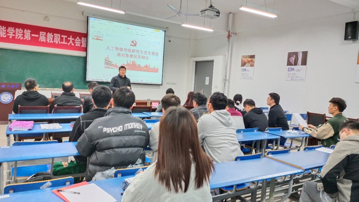 为了加强对优秀共青团员的培养、教育,加强党的队伍建设,充实党的新生力量,激发广大团员青年的政治热情。3月25日,人工智能学院研究生党支部于崇智楼A125室开展研究生发展对象推优入党答辩大会。本次答辩评审小组由学院党委书记张旸,李宪华、华子森、田兴等党员教师组成,研究生支部书记李家宝主持本次会议。
