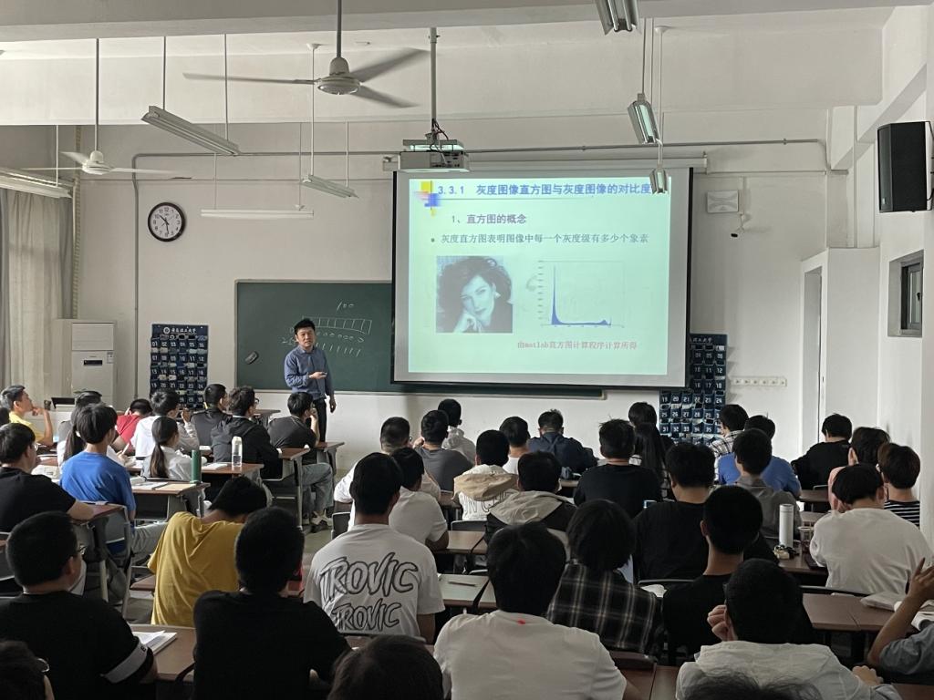 杨超宇讲授《数字图像处理》中关于图像基本运算的相关内容。杨超宇首先对图像运算方法的基本概念做了介绍,然后分别详细讲解了灰度反转、对数变换、灰度直方图、代数运算等图像处理操作的原理及数学表达,并结合程序代码的演示及分析对所讲解的理论内容进行直观性、实践性的教学,加深学生对所学内容的深入掌握与理解。这既培育了学生的逻辑思维能力、知识迁移能力,以及解决复杂工程问题能力,同时也有效提升了教学全过程的高阶性、创新性和挑战度。杨超宇备课充分,充分利用信息化教学工具和平台,不断更新教学内容。教学过程中,他通过深入浅出的讲述,精彩风趣的语言,系统、清晰、全面地展示了教学内容,思政元素有机融入,课堂气氛活跃,展示出厚重的知识积累、扎实的教学功底和极强的课堂掌控能力,得到了观摩教师的一致好评。
