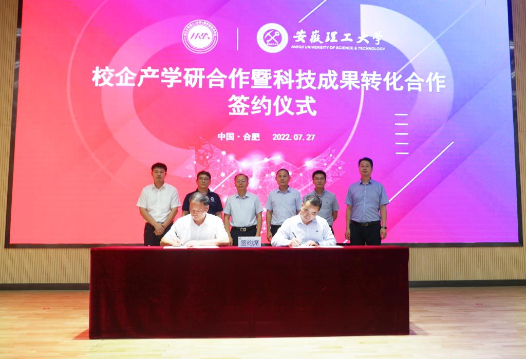 仪式上,宫能平、刘速超代表双方签订校企产学研合作、成果转化协议书。学校就业中心主任黄胜龙与研究院机器人集团合肥有限公司总经理、工会主席李旭东代表双方签订校企共建就业实习基地协议书。根据协议,双方将坚持以科技创新为导向,充分发挥各自技术、人才和平台优势,积极推进国家、省、市各级相关重大科技专项和重点科技计划项目联合申报。同时,重点围绕机器人、人工智能、智能装备、工业软件、光电传感等产业领域,以联合研发、委托研发、揭榜挂帅、供需对接等形式开展技术研发、场景落地及产业化合作。双方将强强联手,推动高校科技成果转移转化,共同培育和造就一批领军型科技企业,打造渠道畅通、转化高效、成果丰硕的成果转化先进示范样本和典范。