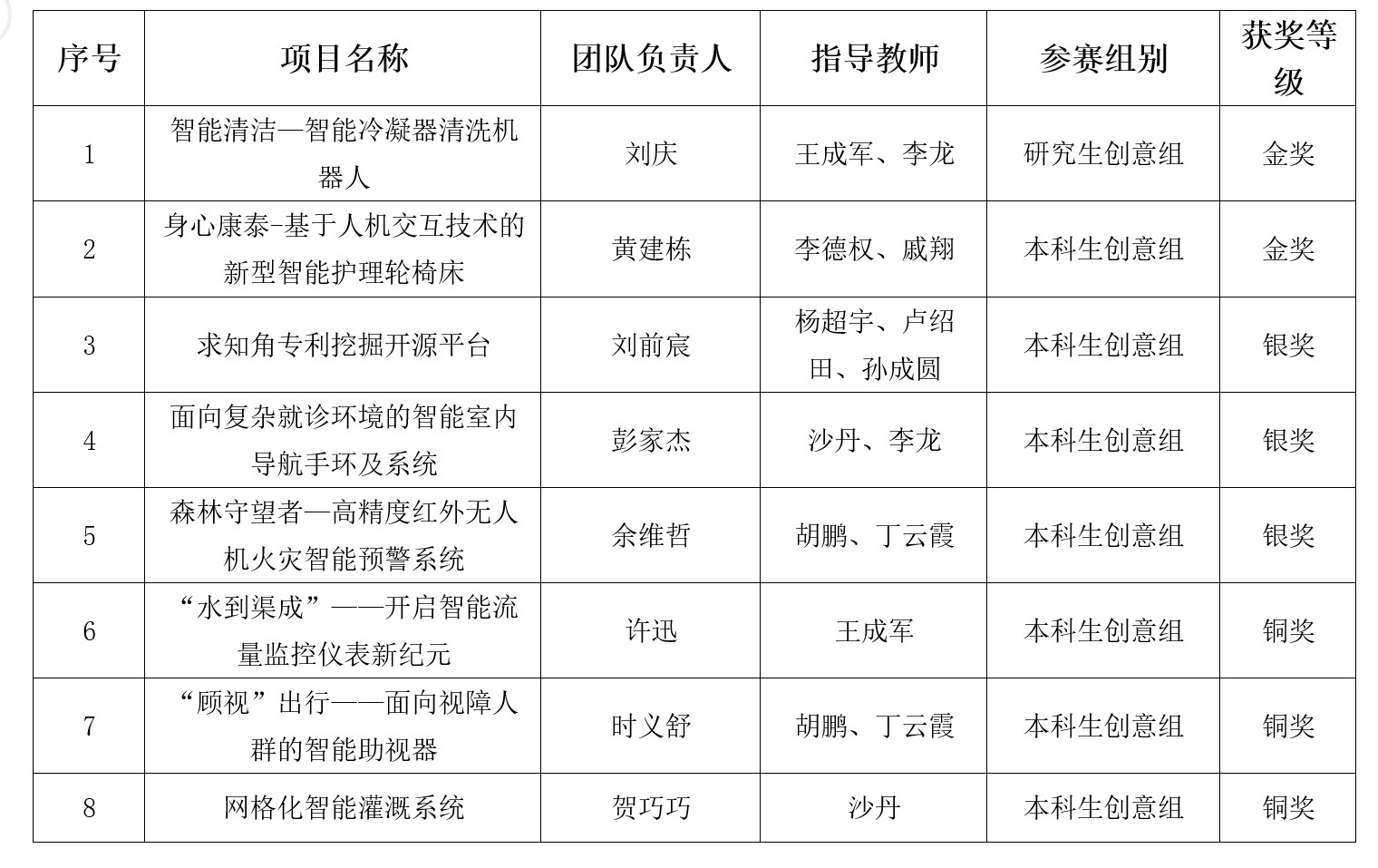 人工智能学院学子提交的“智能清洁—智能冷凝器清洗机器人”项目获得研究生创意组金奖,“身心康泰-基于人机交互技术的新型智能护理轮椅床”项目获得本科生创意组金奖,“求知角专利挖掘开源平台”等3个项目获得本科生创意组银奖,“‘水到渠成’——开启智能流量监控仪表新纪元”等3个项目获得本科生创意组铜奖。