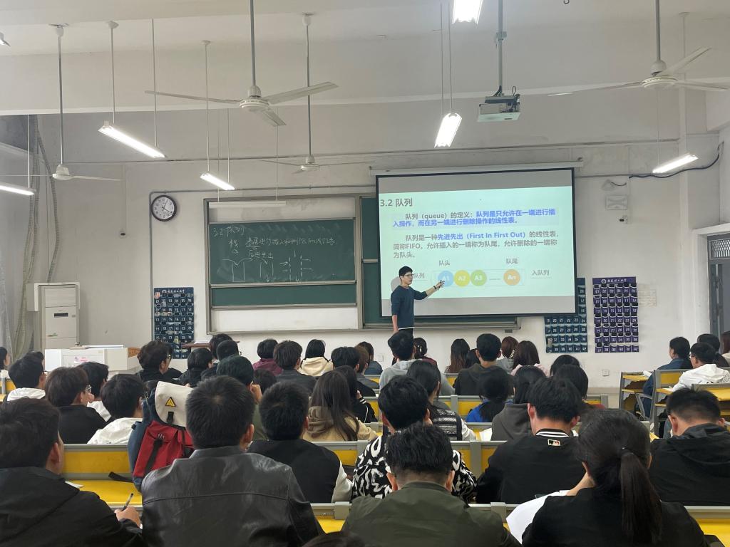 郑文军主讲的是《数据结构》课程中的队列相关内容。首先,郑文军针对队列的基本概念做了介绍,然后分别详细讲解了顺序队列、循环队列和优先级队列等的原理和基本操作,并且结合精选的例题分析、讲解帮助学生及时消化,更好地掌握课程讲授内容。郑文军备课充分,准备了教案、实际案例等各种教学素材。教学过程中,课程内容讲授流畅,系统、清晰、全面展示了教学内容,重难点突出,语言表达生动且富有感染力,思政元素有机融入教学,与课程教学内容相得益彰。并能够联系实际,运用启发式的创意教学方法把复杂问题简单化,课堂气氛活跃,师生互动积极,达到了较好的教学效果,展示出较强的教学功底和课堂管理能力。