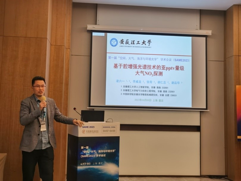 凌六一教授在专题四“环境光学”议题作了题为“基于腔增强光谱技术的亚pptv量级大气NO3探测”的学术报告,受到与会专家关注。