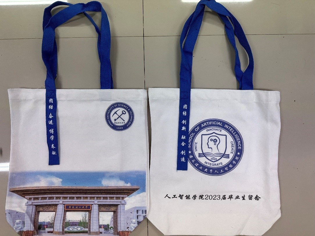 为增强学院毕业生的归属感和幸福感,学院定制了专属纪念品礼盒。印制着院徽的钥匙扣和帆布包代表了学院对毕业生的美好祝福,无论今后身在何方,人工智能学院永远陪伴着每一位毕业生。