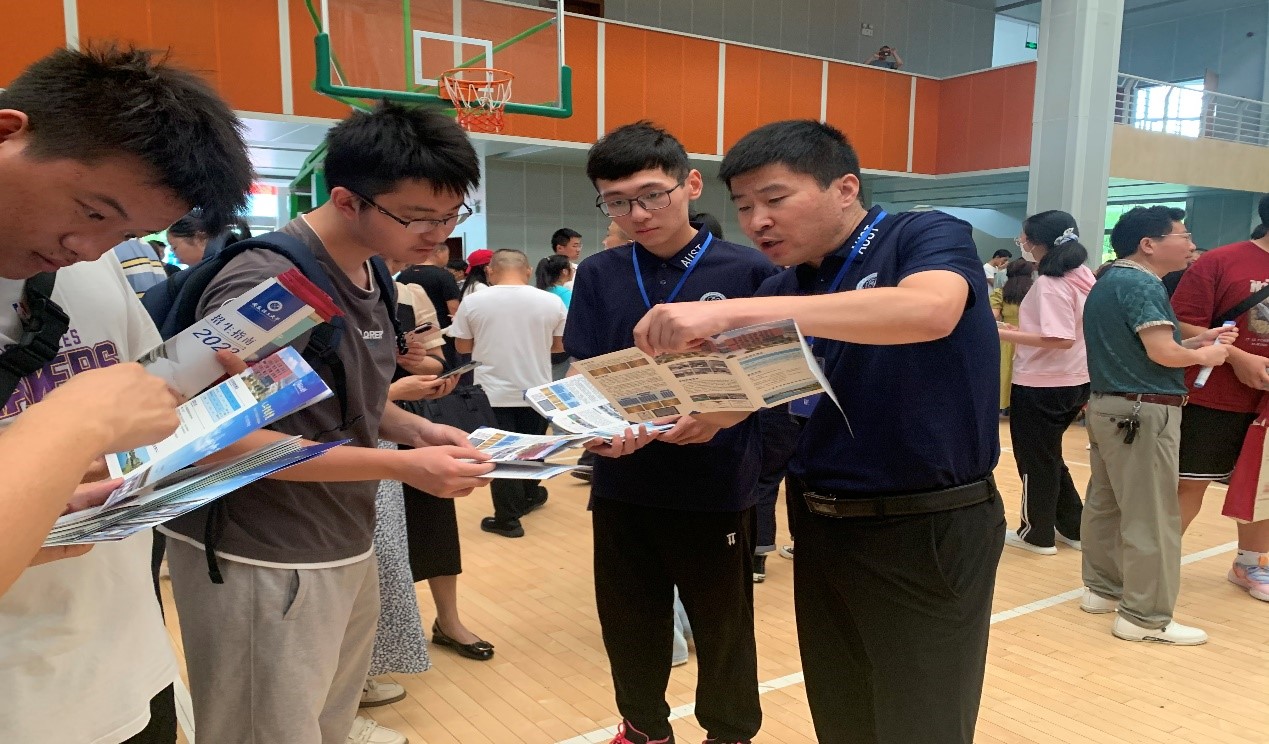 为更好地做好2023年本科招生宣传工作,提高招生宣传实效,学院招募了研究生、本科生及学生家长志愿宣讲员,并颁发了聘书。学院招生宣传人员统一穿戴有学院标识的文化衫,详细、耐心地解答考生及家长们提出的每个问题,同时就学校转专业、奖助体系等相关政策进行了细致解读,共发放学校学院招生宣传手册2500多份。