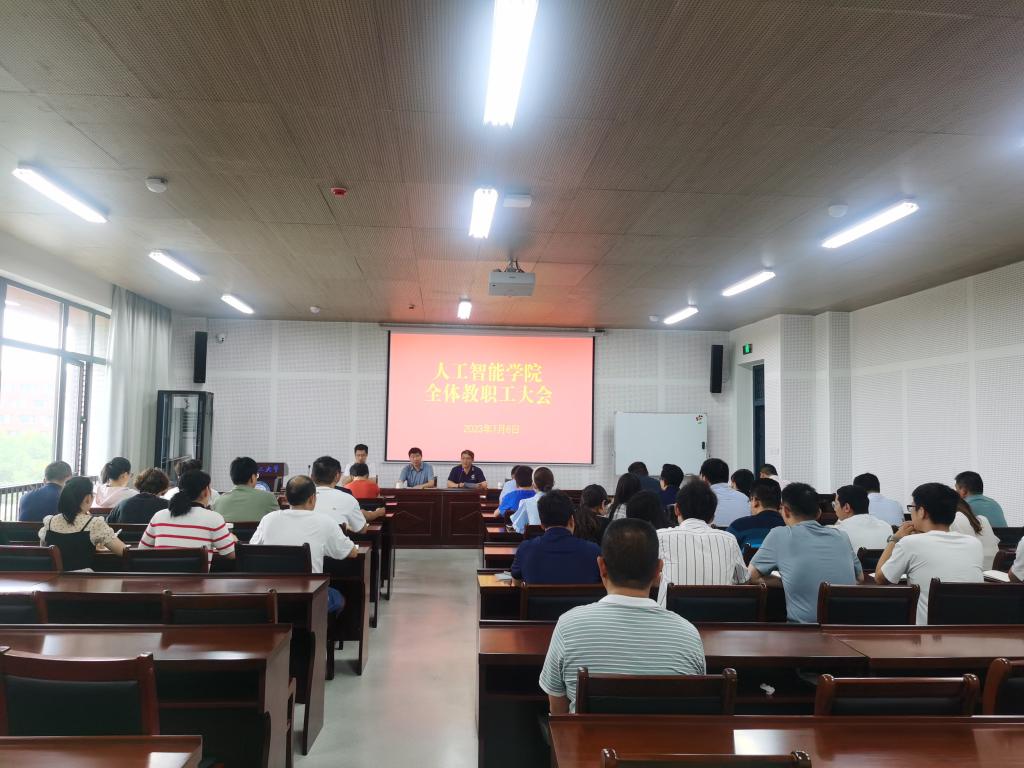 7月6日上午,人工智能学院在明德楼208报告厅召开全体教职工大会,对学院上半年工作进行总结,对暑期工作进行安排部署。会议由学院党委书记张旸主持,学院领导班子和全体教职工参加会议。