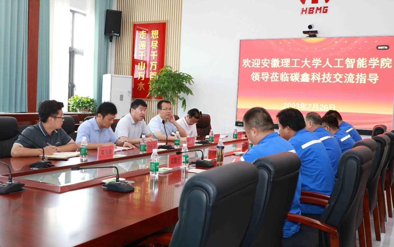 安徽碳鑫科技有限公司党委书记、执行董事张平,总工程师刘建军等负责人热情接待。张平对张旸一行表示热烈欢迎,并部署举行了研讨交流会。刘建军详细介绍了碳鑫科技有限公司发展建设情况,希望在人才招聘、科研合作、平台申报等方面加强校企合作交流,互惠共赢。