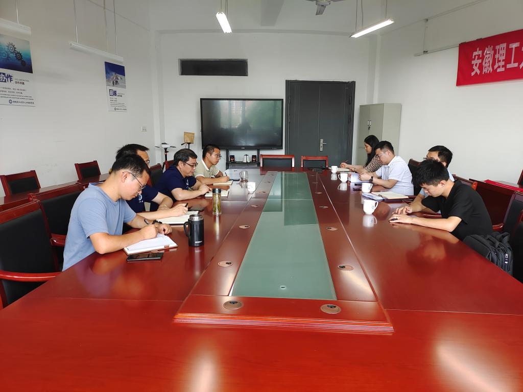 7月29日下午,安徽佐标智能科技有限公司执行董事兼总经理郝旭耀、山东国金汽车制造有限公司副总经理汪跃中、芜湖思科生产力促进中心有限公司总经理焦忠等一行5人应邀到人工智能学院参加交流活动。人工智能学院院长王成军、副院长李德权及各系部分教师参加了会议,会议由院长王成军主持。