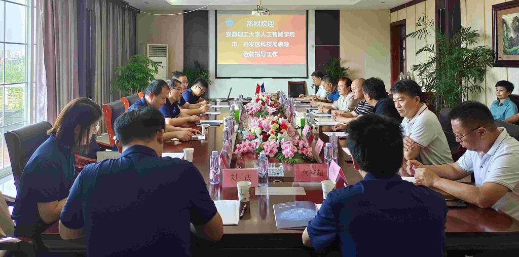 杨体忠对王成军一行表示热烈欢迎,带领大家参观了公司的车间及装配生产线,并在会议室介绍了公司发展、研发方向、研发需求及人才需求等情况。陶卓及吕坤鹏先后介绍了淮北市部分龙头企业的科研需求、岗位需求及人才引进政策。王成军介绍了学院的发展历史、学科专业设置、科研团队建设、团队成员的特长等情况,并重点介绍了政校企合作的模式与路径。座谈会上,科研团队与企业研发人员围绕自移机尾等项目的研发开展深度交流,淮北市众泰机电工程有限公司、安徽梨多宝生物科技股份有限公司等企业代表提出联合人工智能学院科研团队开展多方位合作的意愿。