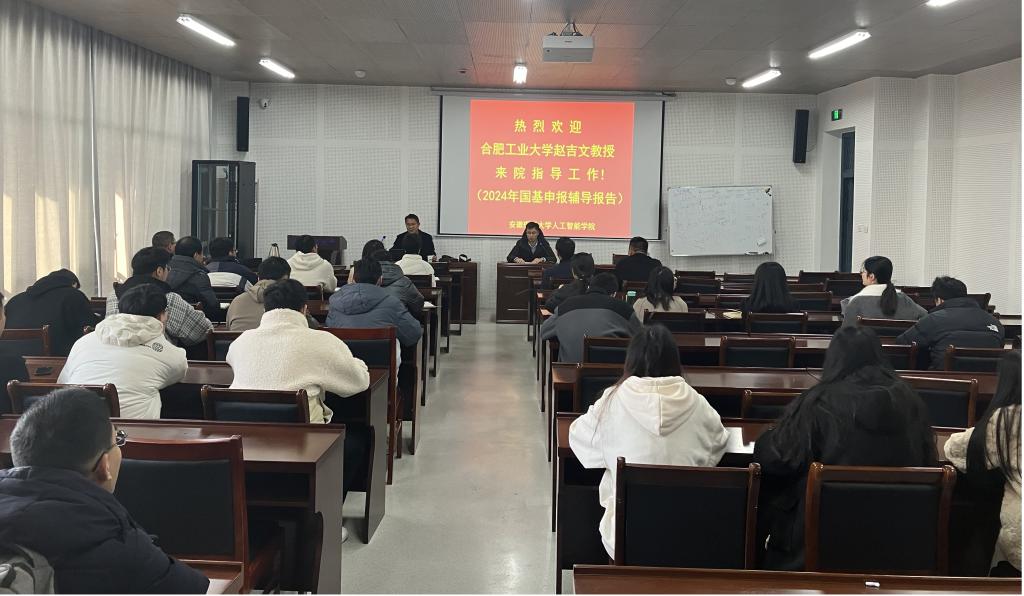 为推进国家自然科学基金申报工作,12月7日,人工智能学院在明德楼208学术报告厅召开2024年国家自然科学基金申报辅导会。合肥工业大学赵吉文教授受邀来我院为青年教师作国家自然科学基金申报辅导报告,会议由学院副院长凌六一主持,学院近30位青年教师参加了会议。