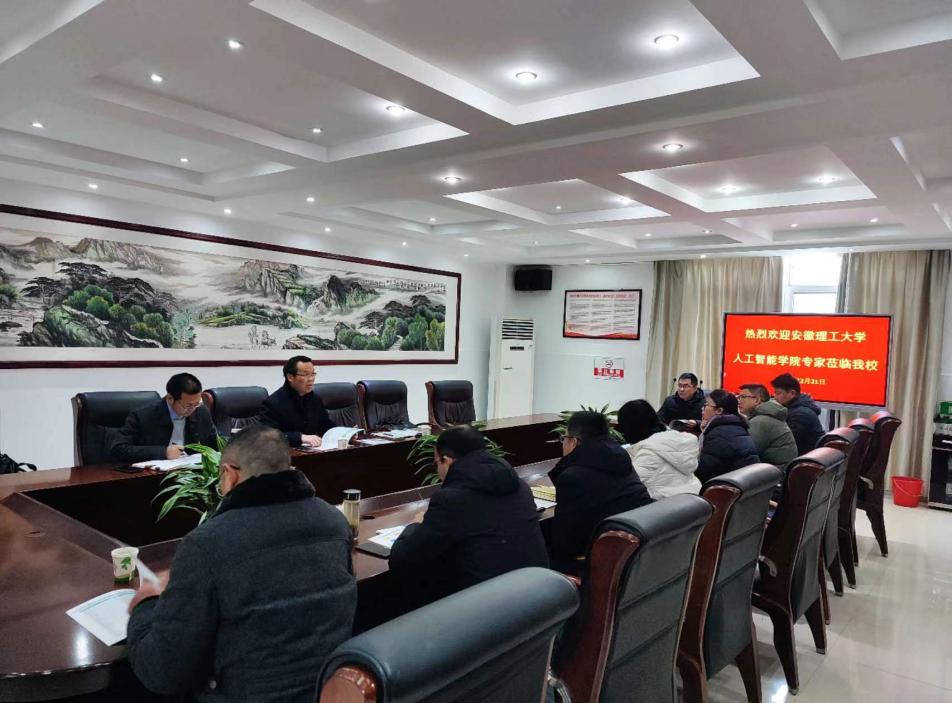 李德权及专业骨干教师向与会校领导及高三年级班主任,详细介绍了安徽理工大学和人工智能学院的办学历史、办学特色、办学优势及近年来毕业生升学就业情况,交流研讨了2024年安徽“新高考”下“新高招”的侧重点及新趋势。双方表示优质生源基地建设是高中与高校提升协同育人成效的重要桥梁,是高校人才培养的重要支撑,期待不断深化良好的校际交流机制,持续加强高校与中学培养模式互动。学院将根据各中学的学业生涯体系建设需求,结合学院学科特点组织研学交流与科普活动,充分激发兴趣对学生成长成才的重要导向作用,与中学在不同育人层次上推深做实“为党育人、为国育才”。
