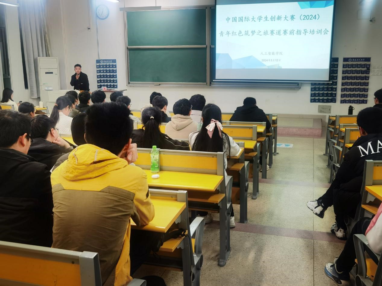 为深入推进大学生创新创业工作,激发我院学生创新创业热情,更好地服务参赛选手,培育高水平,高层次的创业团队,3月12日晚,人工智能学院在明理北楼108教室举办中国国际大学生创新大赛(2024)青年红色筑梦之旅赛道赛前指导培训会。