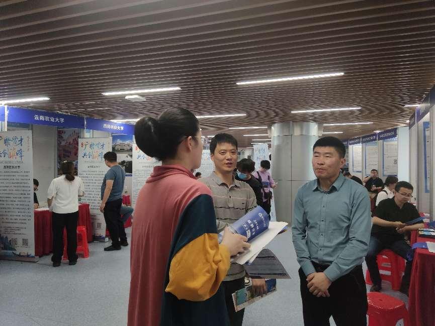 在招聘现场,招聘组一行向应聘者发放学校2024年人才招聘公告等宣传资料,与多位博士研究生进行面对面深入交流,详细介绍了学校和学院的教学环境、科研条件、人才培养等情况,希望更多的优秀博士研究生能够加入学校。