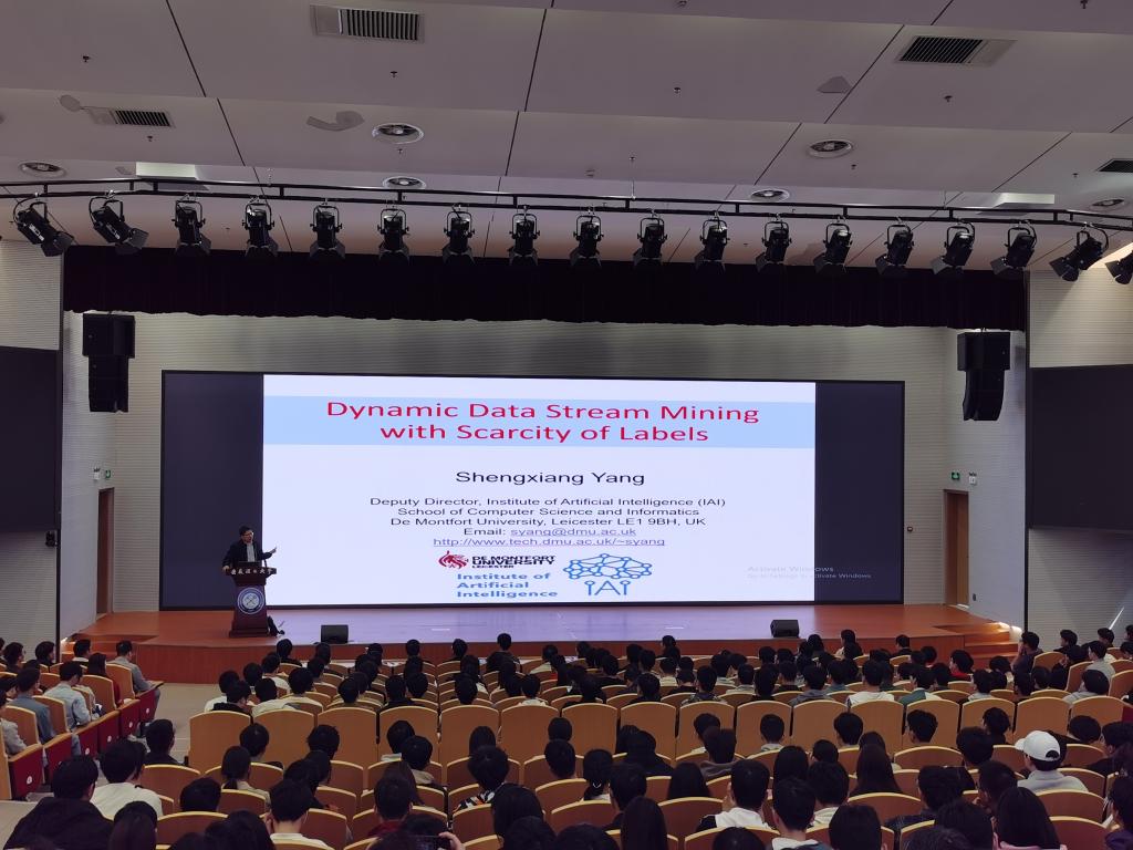 4月9日上午,应科研部和人工智能学院邀请,英国德蒙福特大学计算机科学与信息学院杨圣祥教授、中国矿业大学(北京)机械与电气工程学院郭一楠教授在舜耕会堂为我校师生分别作题为“Dynamic Data Stream Mining with Scarcity of Labels”“知识引导动态多目标进化优化”的学术报告,学校师生近450人认真听取了本次学术报告。报告会由人工智能学院执行院长李长河主持。