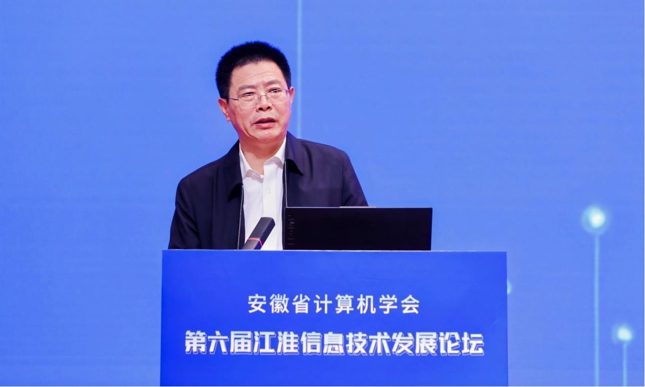 安徽省计算机学会理事长陈恩红教授在致辞中表示希望以此次论坛为契机,深入探讨AI+如何引领产业转型升级,推进“AI+”产业发展焕新向实,助力新质生产力的培育与发展。通过高层次的学术交流与战略合作,共同推动人工智能技术的创新与应用,为安徽省信息技术产业融合创新和经济社会高质量发展提供智力支持和科技支撑。