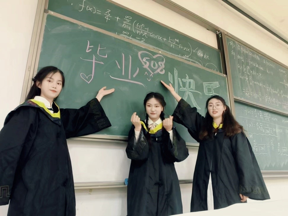 信苑1号楼B单元508宿舍智能科学与技术专业的谷欣欣、韦志清和穆紫岩分别考取了中国矿业大学、安徽大学和安徽理工大学。她们有着共同的学术追求和互相激励的学习氛围。宿舍的常规活动包括分享学习经验、读书笔记或最新的学术动态。韦志清说考研是对个人毅力与能力的全面考验,明确目标、坚持学习、合理调节是成功的关键。谷欣欣建议考研同学设定清晰的院校和分数目标,制定详细的学习计划。穆紫岩说:“大学是探索自己可能性的阶段,应该勇敢尝试新鲜事物,不断充实丰富自己。”