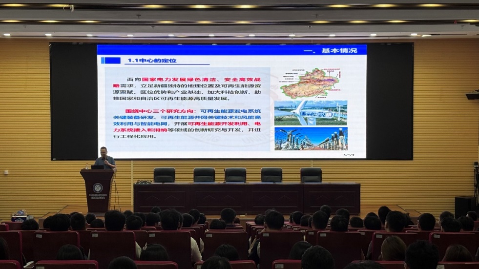 新疆大学电气工程学院何山教授(工程研究中心副主任)介绍了可再生能源发电与并网控制教育部工程研究中心的基本情况、建设情况、实验室建设与学科平台、运行与管理机制规章制度、对外开放与社会服务等。