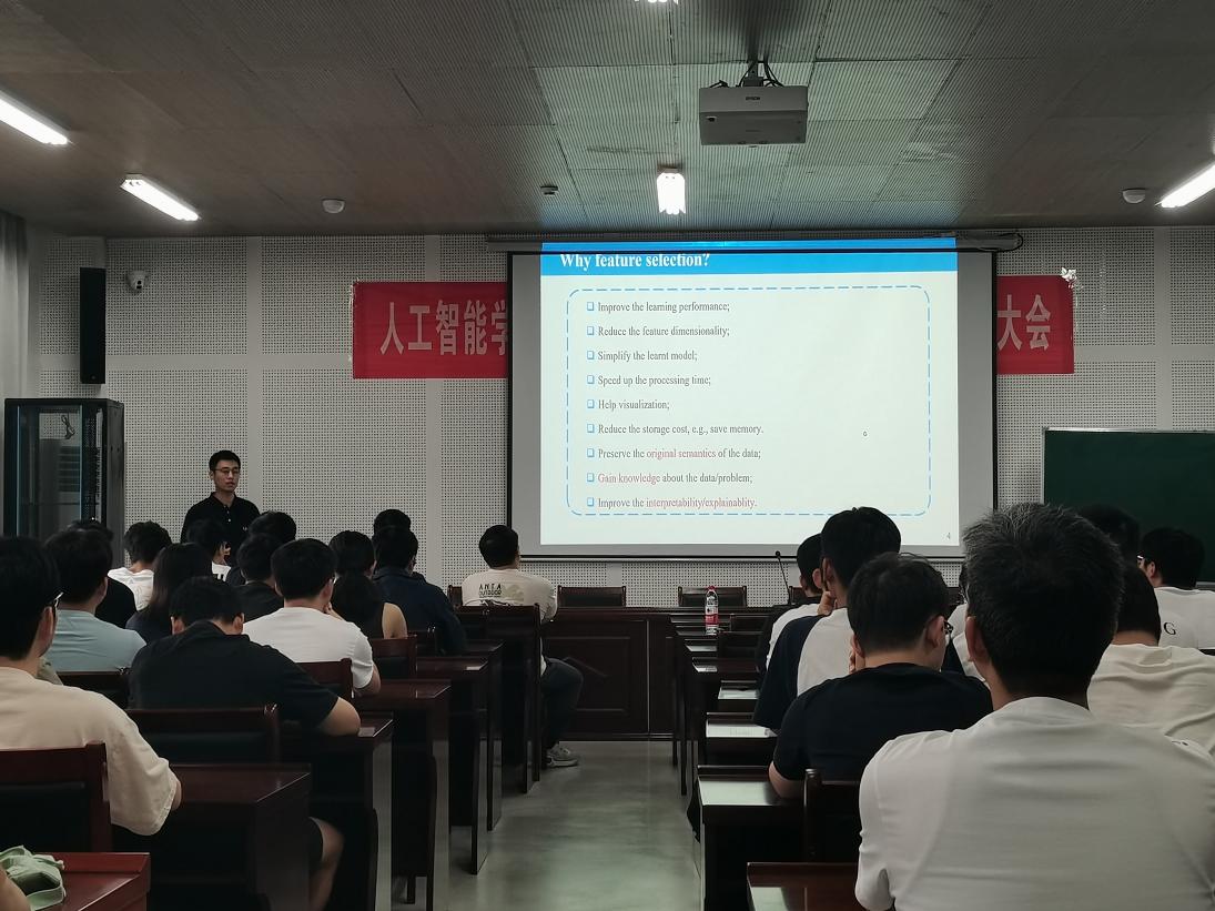 焦儒旺教授作了题为《Evolutionary Multi-objective Feature Selection for Machine Learning》的学术报告。主要介绍了关于特征选择和特征提取方面的问题进展,围绕多目标特征选择的复杂特征交互、指数增长的搜索空间、客观空间中的解重复及其客观选择偏差等挑战,强调了未来多目标特征选择的新兴方向。