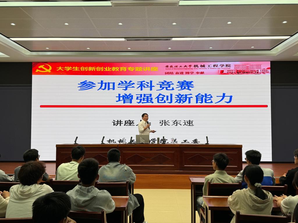 10月11日下午,人工智能学院在学生活动中心三楼多功能报告厅举办2024级本科新生“参加学科竞赛,增强创新能力”创新创业专题讲座。本次讲座由原安徽理工大学创新学院副院长、机械工程学院副院长,现机电学院关工委副主任张东速教授主讲,学院党委书记张旸主持本次讲座。