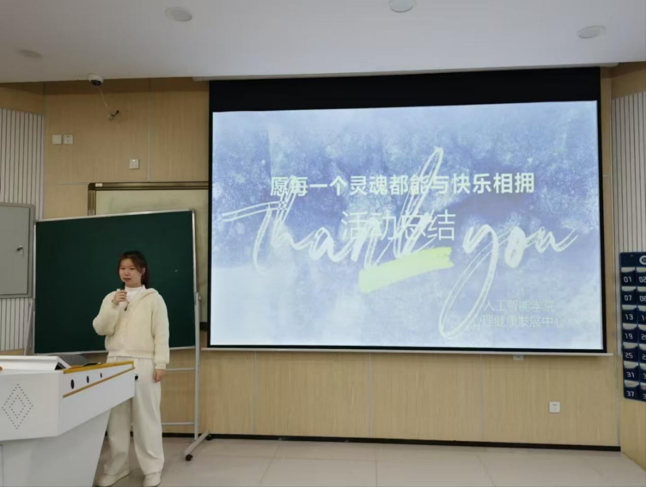 影片播放结束后,此次心灵之旅来到“收尾之站”,由徐瑞瑞做活动总结。她认为本次活动不仅加深了同学们对心理健康的重视,还使同学们了解了更多的心理知识,希望同学们认真感受和珍视亲情、友情、爱情和师生情,在今后的生活中保持积极从容的态度,轻松愉悦地度过每一天。人工智能学院也将持续开展形式多样的心理活动,为学生的心灵成长保驾护航。