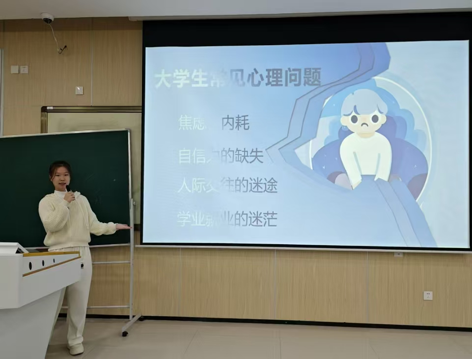 活动启程“第一站”,学院心理健康发展中心工作人员徐瑞瑞向同学们详细介绍了大学日常生活中可能遇到的心理问题及其解决方法,带领同学们正确了解抑郁与内耗。对于“内耗”这一流行词,她作出重点讲解,提出了多种缓解内耗的策略,如转移注意力、培养新的兴趣爱好以及确立明确的目标。此外,她还建议同学们学会合理安排时间,保持良好的作息习惯,积极参与体育锻炼,以增强身体素质和心理承受能力。同学们从她的讲解中汲取力量,受到鼓舞,学到新知。