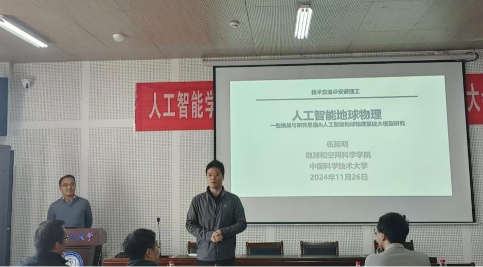 11月26日上午,人工智能学院在明德楼208学术报告中心举办了舜耕智能论坛[2024第5期]-杰出专家系列。本次论坛邀请了人工智能和地球物理交叉领域的权威专家,中国科学技术大学地球和空间科学学院教授、博导伍新明教授及杨佳润博士为师生们作报告。学院党委副书记、执行院长李长河,副院长李德权、蔡昕烨及学院80多名师生参加了此次活动。会议由李长河主持。