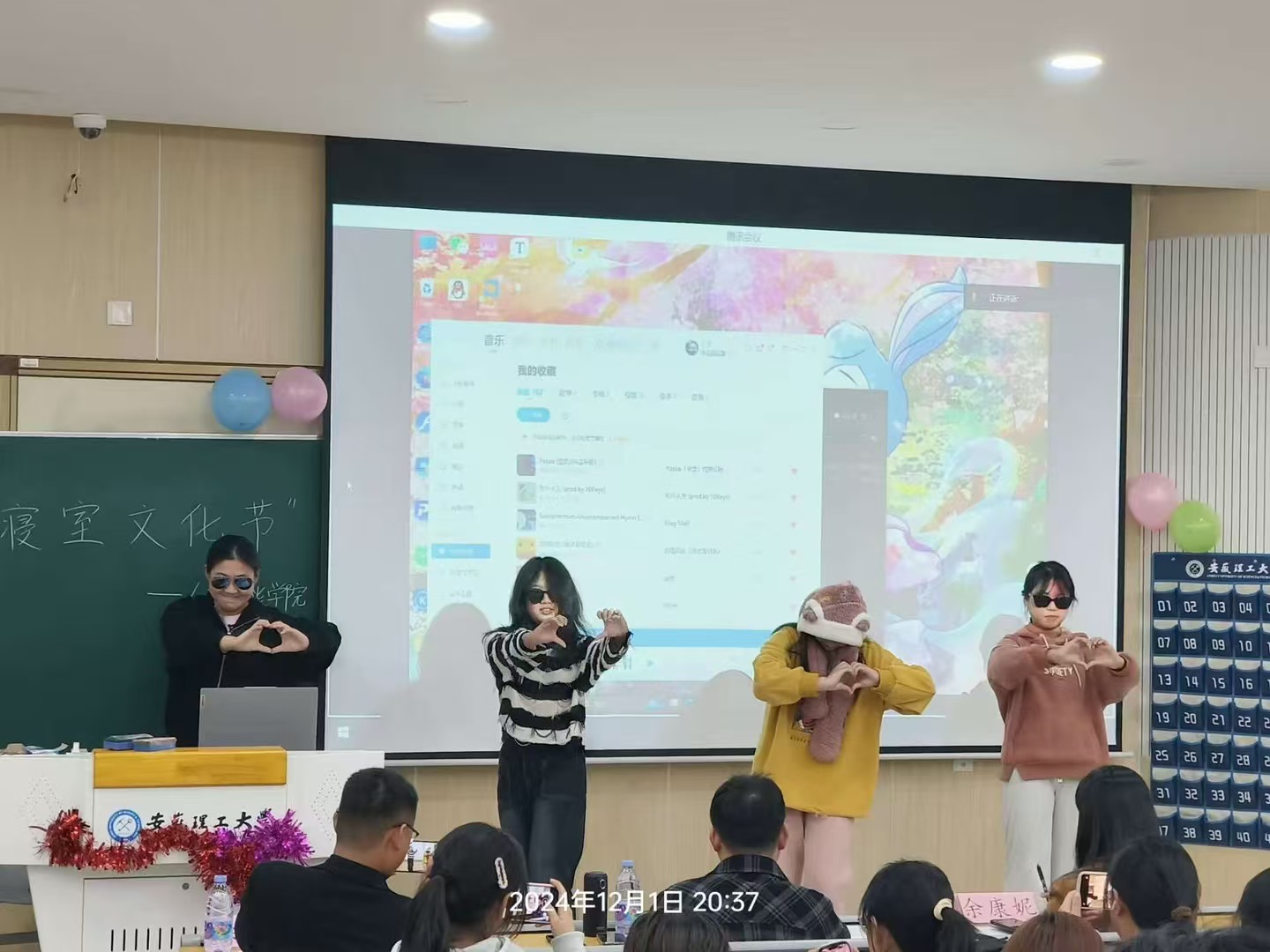 本次活动分为“寝室美化介绍”和“寝室成员才艺展示”两个环节。活动伊始,参赛选手通过介绍寝室每位同学个性特点,以及寝室的日常作息、卫生制度等多方面来展示寝室的温馨与融洽。同时,在活动中选手们展示了寝室的桌面布置、床铺整理以及绿植、墙纸、手办等特色装扮图片和文化涵义,表达了他们对寝室的热爱和对美好生活的向往。部分选手还分享了一些关于宿舍生活的趣味故事和小窍门,这些分享让大家更加深入地了解了这个充满活力与热情的宿舍集体。