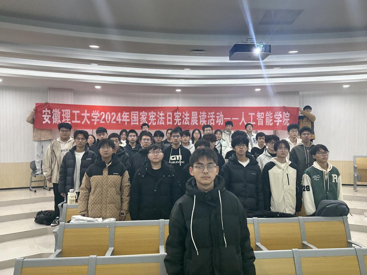 2024年12月4日是我国第十一个国家宪法日,为深入学习贯彻党的二十大精神和党的二十届三中全会精神,贯彻落实习近平法治思想和习近平总书记关于教育的重要论述,积极响应教育部号召,人工智能学院于12月4日在耕心楼及文化广场开展“宪法晨读”活动,2024级人工智能专业5班和6班参与了此次活动。