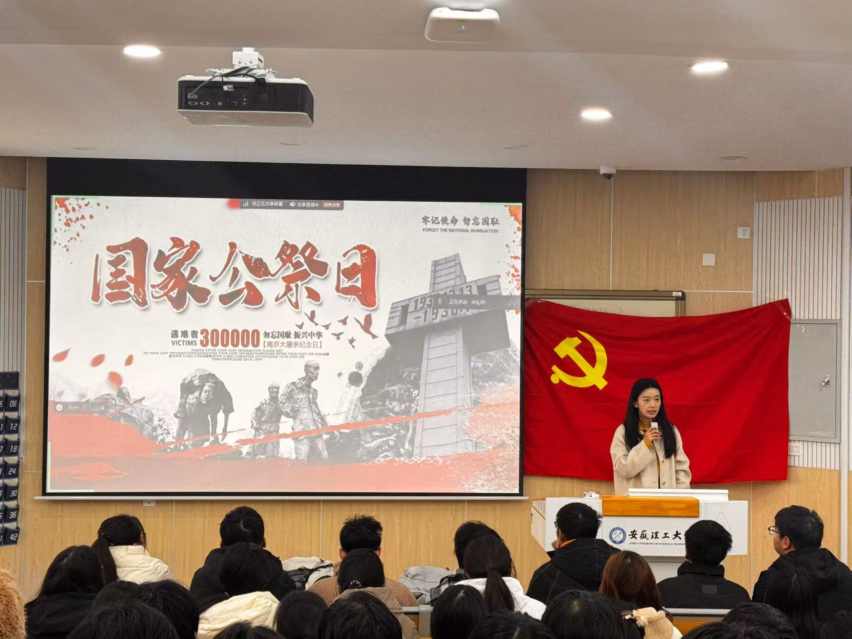 2024年12月13日,是第十一个南京大屠杀死难者国家公祭日,为引导学生铭记历史,珍爱和平美好生活,激发爱国情怀,树立报国之志,人工智能学院合肥党支部开展“铭记历史 勿忘国耻”国家公祭日主题教育活动。人工智能学院合肥党支部全体党员、2024级智能科学与技术专业2班、2024级人工智能专业2班和6班全体学生参与了此次主题活动,活动由党支部书记尹志勇同志主持。